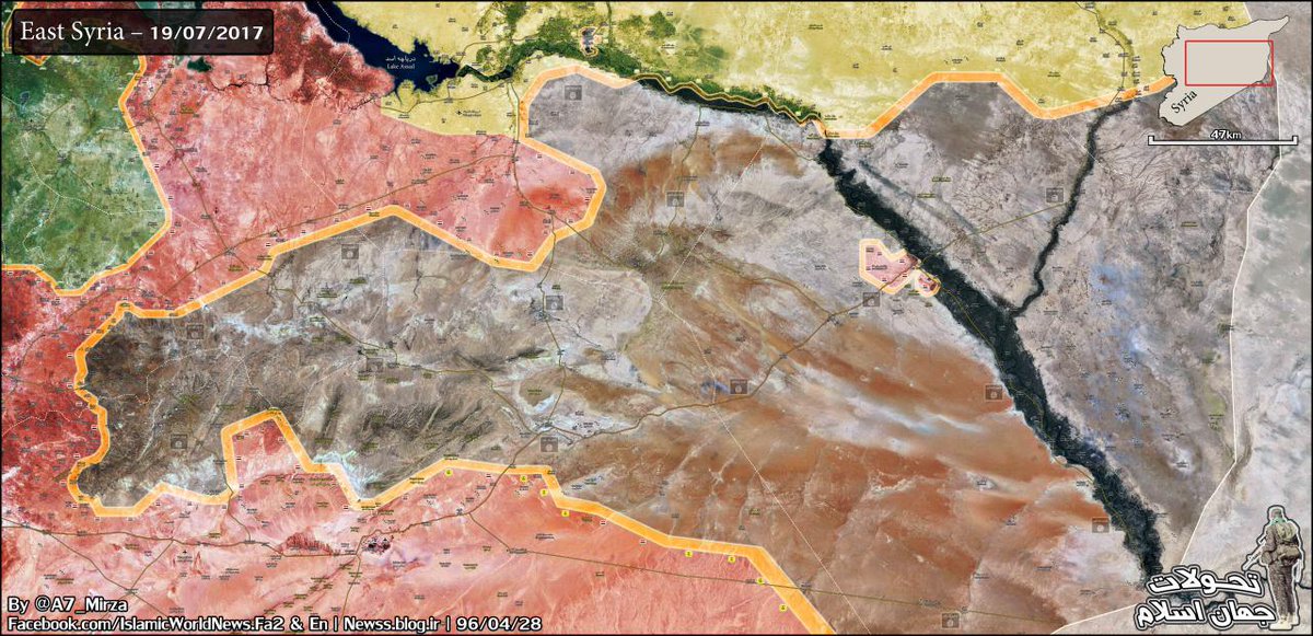 Ďalší postup sa vládnym jednotkám podarilo na východ od mesta Palmýra smerom k Deir Ez Zor v dĺžke približne 30 km. Táto oblasť je poslednou baštou (pevnosťou) teroristov a uprostred nich sa už niekoľko rokov nachádza obkľúčená vládna posádka, ktorá neustále vzdoruje snahám Islamského štátu o ich dobitie.