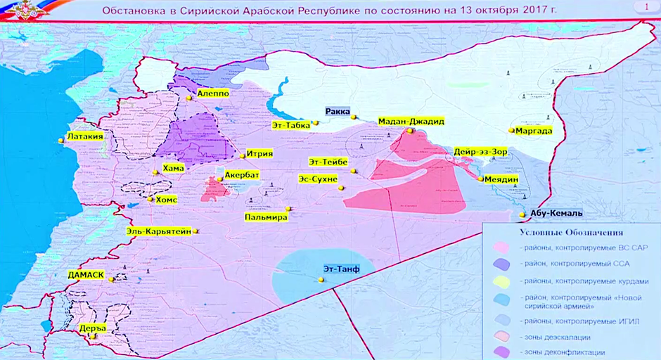 Bezpečnostné (deeskalačné) zóny fungujú v južnej Sýrii, vo východnej Ghoute a v severnej provincii Homs, rovnako ako nekonfliktná zóna v oblasti Tel Rifaat.