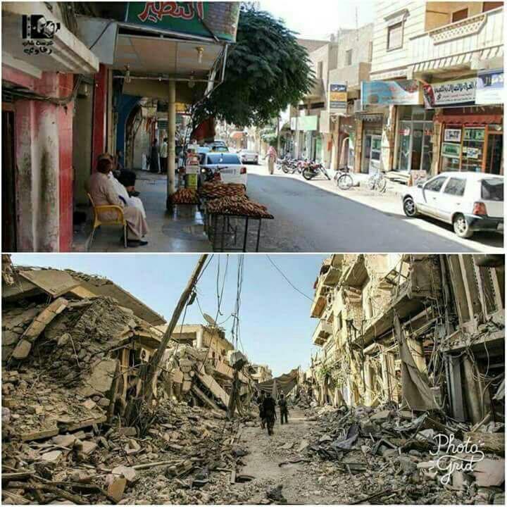 Z mesta kde žilo 200 000 ľudí, a v ktorom sa nachádzali staroveké historické stavby a pamiatky, sa stala jedna veľká ruina. Za spáchanie tejto ruiny sú zodpovedné „najvyspelejšie krajiny západného sveta“, ktoré sa v médiách k tomu hrdo hlásia. Videa a fotky po oslobodení Rakky nepotrebujú ďalší komentár.