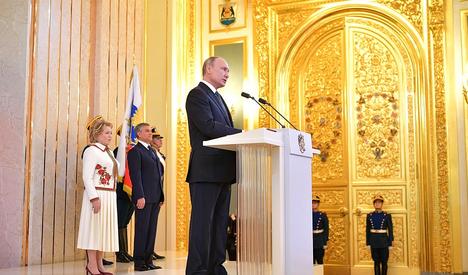 V Kremeľskom paláci sa 7. mája uskutočnil slávnostný ceremoniál inaugurácie Vladimíra Putina ako prezidenta Ruskej federácie. Ceremónia začala slávnostným vyvesením Ruskej štátnej vlajky. V súlade s článkom Pokračovať v čítaní